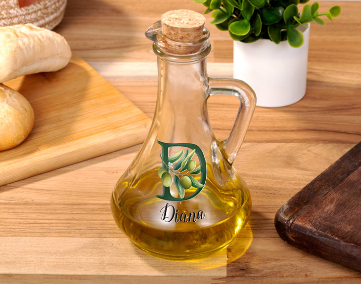 Para quienes disfrutan cuidando cada detalle en la cocina, esta aceitera de cristal personalizada con tapón de corcho y diseño de letras botánicas es el utensilio ideal. Perfecta para quien acaba de estrenar casa o para quienes se atreven a experimentar con nuevas recetas, se trata de un utensilio de cocina personalizado tan práctico como original. Es el regalo perfecto para amantes de la cocina y un acierto seguro, tanto para principiantes como para chefs con experiencia. Además de funcional, esta aceitera aporta un toque de estilo y distinción a cualquier rincón de la cocina. Imagina la ilusión de tener una aceitera con nombre que realza el sabor de cada plato y que lleva tu nombre. Lo mejor de todo es que podrás elegir la inicial que más te guste entre nuestros diseños botánicos, llenos de flores, hojas y colores naturales. Después, solo tienes que añadir un nombre o texto corto para hacer que el resultado sea aún más especial. El diseño floral le da ese toque natural y elegante que la convierte en un regalo realmente único. Y personalizarla es muy fácil: añade la aceitera al carrito, elige la inicial, escribe el nombre y listo. Nosotros nos encargamos de grabarlo en la botella para que el regalo sea tan especial como la persona que lo recibe. Altura: 15 cm Capacidad: 250 ml Tapón: corcho natural