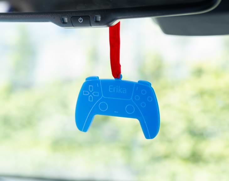 ¿Eres fan de los videojuegos o conoces a alguien que no se despega del mando? Ahora pueden llevar su pasión al volante con este adorno colgante para coche con diseño de mando de Play. Fabricado en metacrilato grabado, es el toque gamer perfecto para tu espejo retrovisor. Este colgante retrovisor personalizable con nombre, una frase corta o incluso una fecha especial, no es solo un detalle decorativo: es un accesorio único, con mucha personalidad, que transforma por completo el interior de tu coche. Además, podrás elegir el diseño de mando que más te guste y el color del metacrilato que mejor combine con tu coche. Ideal como regalo para gamers o parejas frikis, sera el obsequio original, divertido y muy personal, perfecto para esos apasionados del universo Play. ¿Cómo personalizarlo? Muy fácil: añade el producto al carrito, accede al área de personalización, elige el color del metacrilato y el diseño del mando, escribe el nombre o texto corto que quieras y listo. Tendrás un colgante para retrovisor grabado, ligero, vistoso y con todo el estilo. Que tu vehículo hable de ti y de tus aficiones con este regalo original para coche . Medidas aproximadas: 8cm x 5.5cm