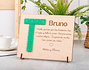 • Adorno de madera personalizado. • Soporte de madera. • Tarjeta Recordatoria.