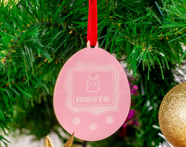 ¿Eres de esas personas a las que les encantan los detalles originales y decorar de una forma única y especial? Esta Navidad, dale un toque diferente a tu árbol con este adorno para árbol de Navidad personalizado. ¡Es un Tamagotchi convertido en decoración! Lo más retro y adorable que verás estas fiestas. Te transportará directamente a tu infancia, y para quienes no vivieron esa época, les hará sentir toda su magia. Es una idea estupenda como regalo original de Navidad para ese fan del Tamagotchi, la adorable mascotita virtual con la que pasábamos horas jugando y cuidándola. Puedes elegir el diseño que más te guste y personalizarlo con el nombre de esa persona especial. Seguro que le encantará, su árbol quedará lleno de nostalgia, recuerdos y emociones bonitas. Este adorno de metacrilato grabado añadirá un toque sentimental a tu decoración navideña. Entre las luces y los brillos, despertará sonrisas y más de un "¡yo tenía uno!". Personalizarlo es facilísimo: añade el adorno al carrito, elige tu diseño favorito y escribe el nombre que quieras. Y así en pocos minutos tendrás el adorno original para árbol navideño más chulo de todos. Olvídate de las decoraciones aburridas y dale a tu árbol ese toque divertido y lleno de recuerdos, porque la Navidad va de eso: de vivir y revivir los mejores momentos.
