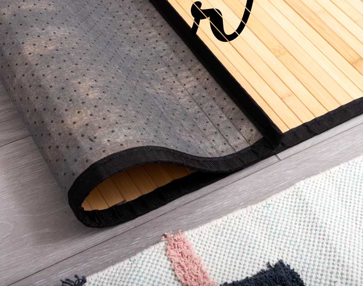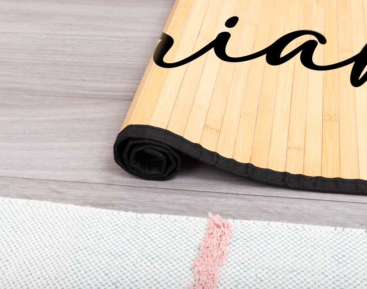 • Alfombra de bambú personalizada. • Tarjeta recordatoria.
