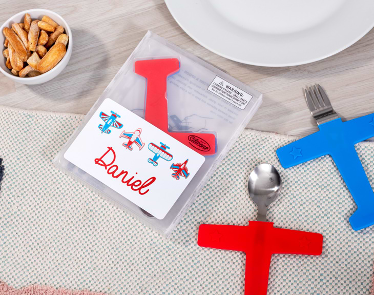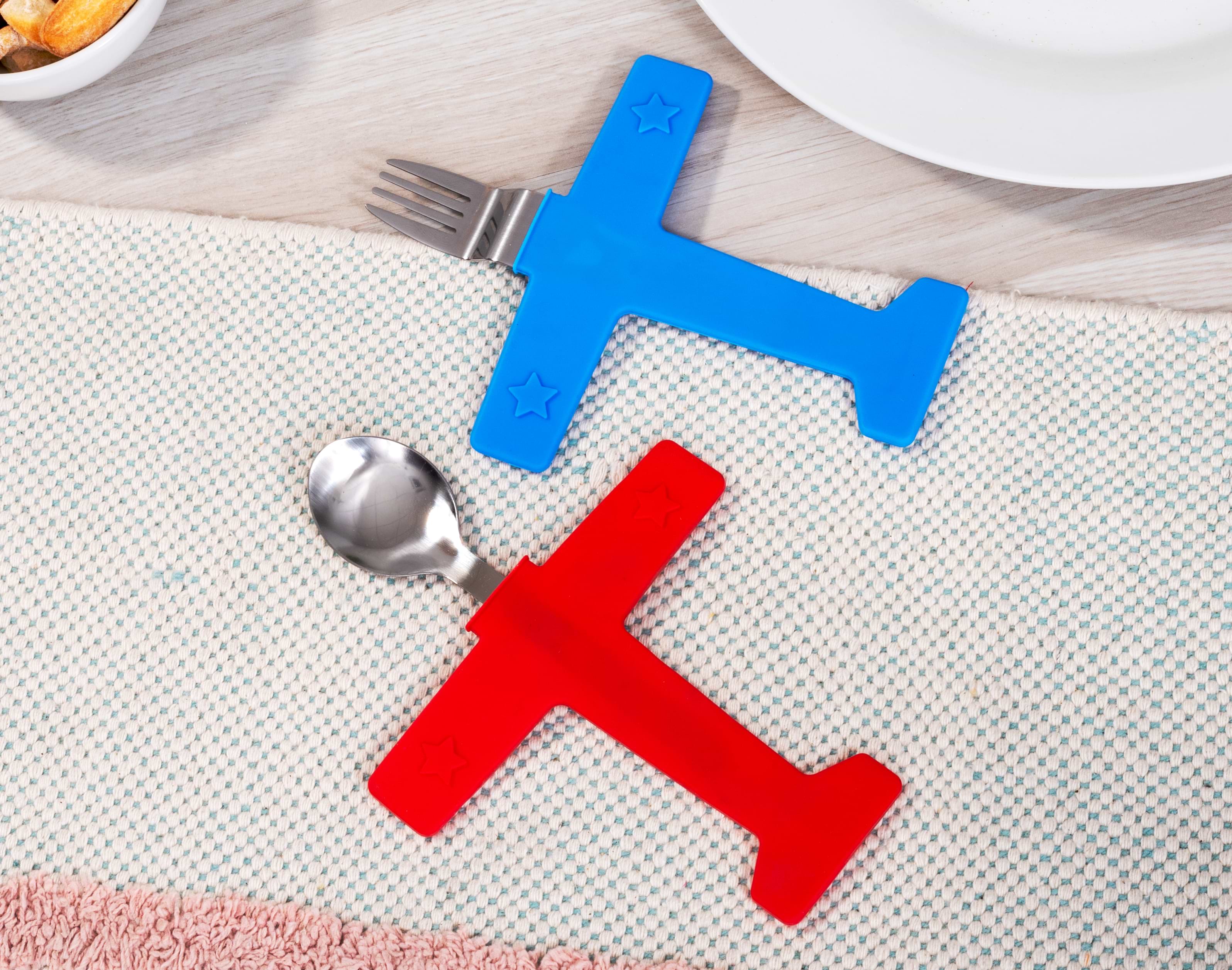A los peques de la casa les encanta jugar y pasárselo bien, y este pack de tenedor y cuchara es la opción perfecta para hacer de cada comida un momento divertido y especial. Está fabricado en acero inoxidable y recubierto de silicona, lo que lo hace mucho más cómodo, higiénico y seguro para los niños. Su empaque personalizado con nombre incluye un divertido diseño de aviones, ¡ideal para que tu peque se divierta haciendo avioncitos con cada bocado! A partir de ahora, ninguna comida será aburrida, por sencilla que sea. Le encantará comer verduras, frutas, yogur y todo lo que le pongas en el plato. Y si tu peque está empezando con la alimentación complementaria, este set es perfecto para explorar nuevas texturas y descubrir sabores por primera vez. ¡Terminará adorando la comida y también los aviones! La etiqueta del diseño es personalizable, lo que lo convierte en un regalo original y lleno de cariño. Solo tienes que añadir el producto al carrito, escribir el nombre del peque para el empaque y listo. Tendrás un set de cubiertos para niños . Un detalle ideal para que no quede nada en el plato… ni en el cielo.. Medidas aproximadas: 19 cm x 12,5 cm Apto para lavavajillas.
