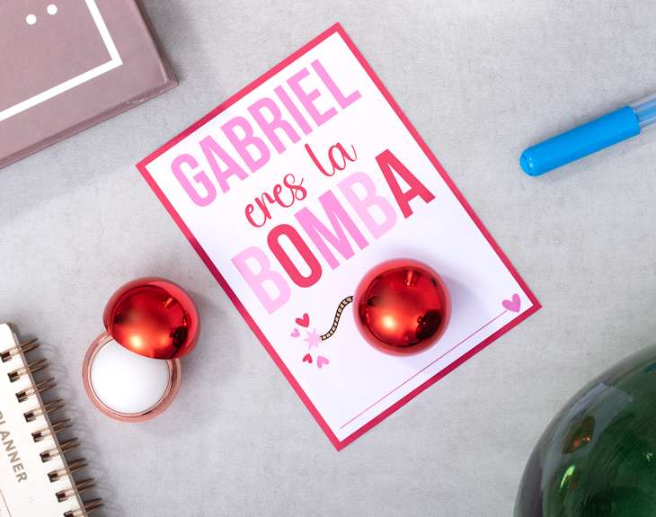 Seguro que tú también conoces a esa amiga que es dinamita pura, si siempre que sales con ella acabáis en el sitio más inesperado y siempre te lo pasas en grande, está claro que se merece el mejor detalle de todos. Nuestra tarjeta personalizada con bálsamo labial con diseño "Eres la bomba" lleva su nombre. Este regalo único es perfecto para cualquier ocasión especial como un cumpleaños o incluso un amigo invisible. Sin duda, es una preciosa forma de demostrarle a esa amiga lo mucho que la aprecias, le hará muchísima ilusión. Además, es personalizable, podrás escribir el nombre que quieras en esta tarjeta. ¡Quedará genial! Personalizar esta tarjeta con bálsamo labial es súper sencillo. El primer paso a seguir consiste en añadir el producto al carrito y entrar al área de personalización. Una vez ahí, ya puedes escribir el nombre de esa persona tan especial. Pronto estará perfecta y lista para regalar. ¡Será un original regalo! Medidas de la tarjeta: 14 x 10 cm.