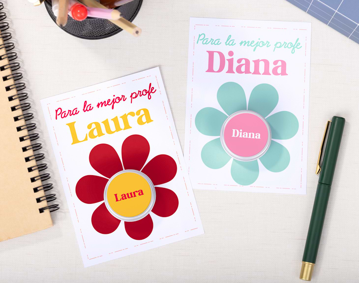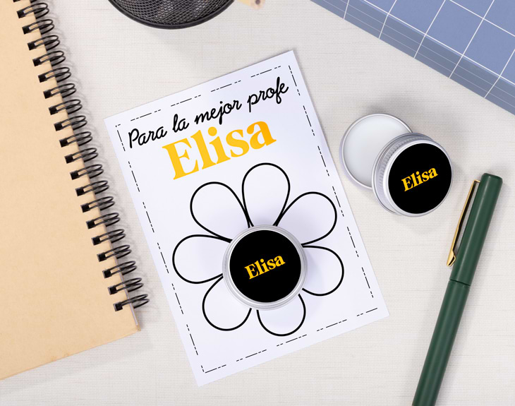 ¿Este año habéis tenido al mejor profe del mundo? ¡Tenemos la forma más original de demostrárselo! Nuestro bálsamo labial con tarjeta personalizada con diseño "Flores para el profe" será un regalo único que le encantará. Es genial para sorprenderle ahora que llega el fin de curso. ¡Así nunca se olvidará de su clase favorita! Esta tarjeta personalizada viene con un bálsamo labial, perfecto para proteger y mantener bien hidratados los labios. Además, es personalizable, podrás escribir el nombre del mejor profe del mundo. Imagina la ilusión que le hará recibir este regalo tan guay, le encantará. Personalizar esta tarjeta con bálsamo labial es muy sencillo. El primer paso a seguir consiste en añadir el producto al carrito y entrar al área de personalización. Una vez ahí, ya puedes escribir el nombre del mejor profe. Pronto estará perfecto y listo para regalar. ¡Será un original regalo para profesores! Medidas: Diámetro: 4 centímetro. Alto: 1,5 centímetro.