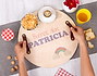 • Bandeja redonda personalizada. • Tarjeta recordatoria.