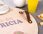 ¿Acaso existe una mejor forma de sorprender a esa persona que quieres tanto que con un desayuno en la cama? Esta comida es la más importante del día, y no se nos ocurre una mejor forma de tomarla que en esta bandeja de madera personalizada tan colorida y animada. ¡No tendrá que moverse de la cama para comer su tostada y su café favorito! Con esta bandeja redonda con diseño de buenos días podrás sorprender a cualquier miembro de la familia. ¡Tus hijos empezarán el día con una sonrisa gracias a esta bandeja! Las dos asas de cuero marrón harán que lo puedas llevar desde la cocina sin problemas, y su diámetro de 41,5 centímetros es perfecto para colocar todos los componentes del desayuno. ¡Será la mejor manera de dar los buenos días! Se suele decir que un buen día comienza con un buen desayuno, y gracias a este regalo original no tendrás ningún problema para averiguarlo. ¿Cómo podrás personalizar este producto? En el área de personalización encontrarás el diseño para la bandeja, en el que solo tendrás que clicar sobre el cuadro de texto para personalizarlo con el nombre que quieras. ¡Da los buenos días de una forma única! Medida: 41,5 centímetros de diámetro. Material: madera. Importante: Las maderas tienen vetas y estas quedan reflejadas en la imagen.