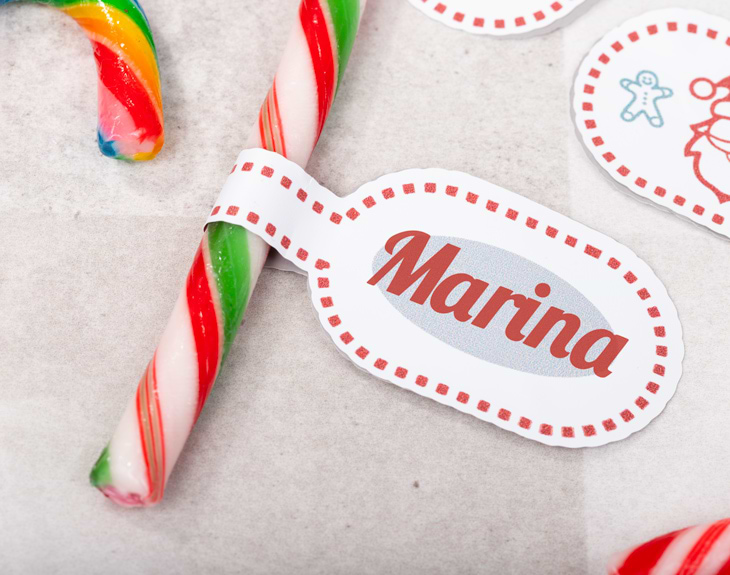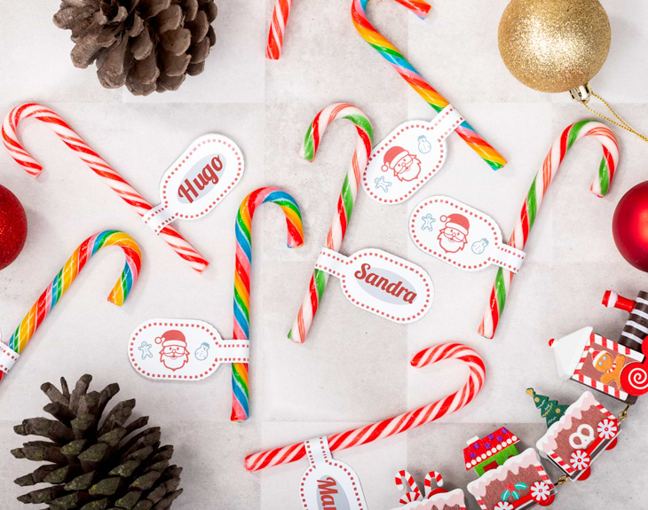 No hay nada más navideño que unos bastones de caramelo. Existen muchas leyendas y teorías acerca del origen de estas chuches, pero lo que sabemos seguro es que tienen un sabor exquisito y alegran todas las casas en Navidad. Pero es que nuestros bastones para Navidad tienen algo que les hace más particulares todavía: llevan una etiqueta personalizada. Por un lado, Papá Noel y demás elementos y personajes navideños y, por otro, el nombre de la persona que va a disfrutar de estos bastones. ¡No te pierdas este regalazo para Navidad! Importante: si puedes tener reacción a cualquier tipo de alérgenos, puedes escribirnos para consultar si hay alguna opción alternativa.