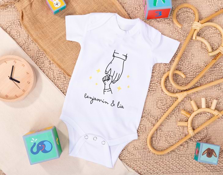 Si quieres sorprender este Día del Padre a ese amigo o familiar que acaba de convertirse en papá, tenemos el detalle perfecto: nuestro body personalizado “Siempre juntos”. Es un regalo ideal para dar una cálida bienvenida al bebé y felicitar a los nuevos padres. ¡El padre primerizo se emocionará al recibir este precioso regalo! Y, ¿por qué no sorprender también al abuelo? Sin duda, es la mejor prenda para que el bebé luzca durante sus primeros meses de vida. Puedes elegir entre varios colores, como azul, negro, blanco o rosa, para que se adapte al gusto de los papás. Además, estos bodys están hechos de suave tela de algodón, ideal para la delicada piel de los más pequeños. Cuentan con cuello tipo americano y corchetes en la parte inferior para hacer los cambios de ropa o pañal mucho más cómodos. Son de manga corta y están disponibles en tallas desde los 3 hasta los 18 meses. ¿Cómo personalizar este body? Es muy fácil: añade el producto al carrito, entra en el área de personalización y escribe el texto que deseas. Además, podrás elegir entre letras negras o blancas. Te recomendamos seleccionar el color de las letras en función del color del body elegido para que resalte perfectamente. Nosotros nos encargamos de que quede perfecto y listo para regalar. ¡Será el regalo más original para padres primerizos!