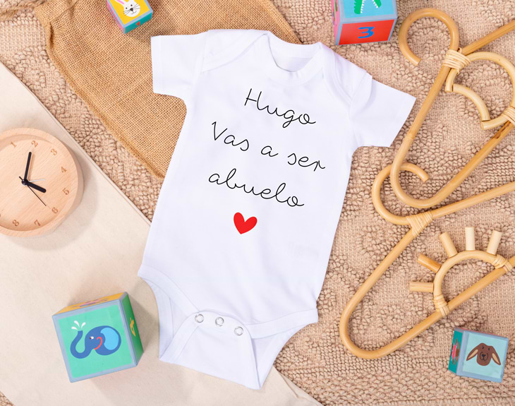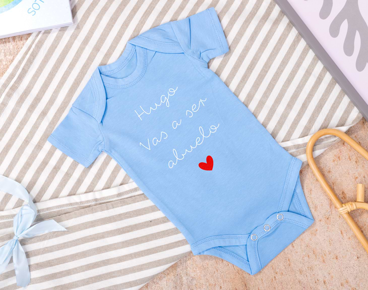 La noticia de la llegada de un nuevo integrante a la familia es de las más emocionantes que podemos recibir. Si quieres hacerlo de una manera especial para tus familiares, nuestro body personalizado con diseño "Vas a ser..." es perfecto. Sin duda con este body emocionarás a quienes lo reciban. Será una forma tierna y emocionante de dar la gran noticia. Este body es personalizable, lo que significa que puedes elegir a quien va dirigido. Abuelos, tíos, padrinos... ¡toda la familia puede recibir el suyo! Es que la ropa de bebe nos da ternura a todos, pero además imagina la cara de quien lleve su nombre. ¡No habrá regalo más lindo y especial! Personalizar este body es muy facil. Añade el producto a tu carrito e ingresa al área de personalización. Una vez allí, escribe el nombre de la persona que quieras que lo recibas. Por último escoge color y talla del body. ¡Pronto tendrás el doby más tierno listo para regalar a tus familiares! Material: algodón.