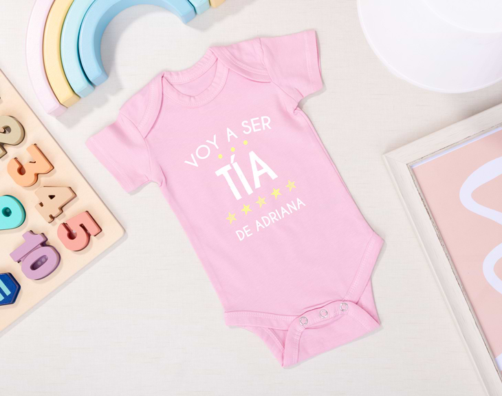 ¡La llegada de un bebé siempre es una gran noticia para todos! Llena la casa de alegría e ilusión. Si quieres anunciar esta noticia a tus familiares de la manera más original de todas, tenemos la solución, se trata de nuestro body personalizado con diseño "Voy a ser...". ¡Es ideal para esta ocasión! Imagina la ilusión que le hará a todos esos familiares enterarse de esta noticia tan especial, les encantará. Además, lo más guay de este body es que es personalizable, podrás escribir el nombre que tú quieras. ¡Quedará genial! Se convertirá en un regalo súper original. Por último, personalizar este body es muy sencillo. El primer paso a seguir consiste en añadir el producto al carrito y entrar al área de personalización. Una vez ahí, ya puedes escribir el nombre que tú quieras. Pronto estará perfecto y listo para regalar. ¡Será un original regalo para nacimientos!