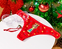 • Bola para el árbol de navidad personalizada. • Tanga rojo personalizado. • Tarjeta Recordatoria.