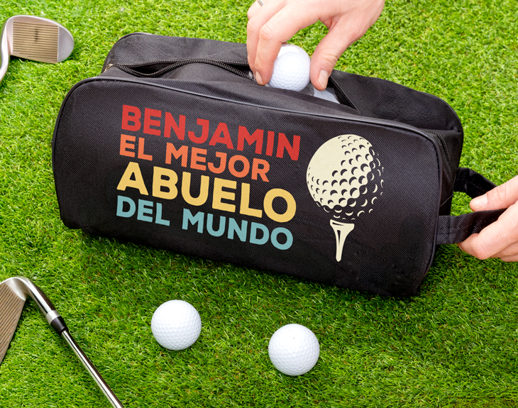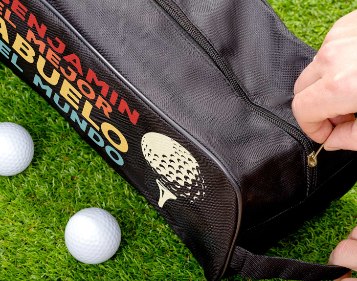 Esta bolsa personalizada para bolas de golf será el detalle perfecto si tu abuelo es un apasionado del golf. Con un diseño que incluye un tee de golf, es un regalo que seguro le encantará. Además, ¡puedes personalizarla con su nombre para hacerla aún más especial! La bolsa está diseñada para que tu abuelo pueda llevar sus bolas de golf de manera ordenada y práctica, ya sea en su próxima partida o mientras practica en el campo. Es ligera y fácil de transportar, ideal para mantener todo organizado durante sus días de golf. Y lo mejor de todo es que, gracias a su diseño completamente personalizable, ¡será muy fácil identificarla entre las demás! Un regalo original que le hará sentir aún más especial mientras disfruta de su deporte favorito. Un regalo ideal para cualquier ocasión, especialmente para el Día del Padre o su cumpleaños, ¡y perfecto para todos los amantes del golf! Medidas: 34,5 x 16 x 14 cm.