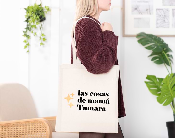 Estamos seguros de que no hay mejor regalo para sorprender a la mejor madre del mundo que con nuestra bolsa tote personalizada con diseño "Las cosas de mamá". Es la mejor forma de demostrarle todo el amor que sientes y lo mucho que la quieres. Es ideal para sorprenderla por el Día de la Madre, por su cumpleaños o por cualquier ocasión especial, ¡le encantará! Esta bolsa es perfecta para que pueda guardar todo lo necesario del día a día. ¡Se convertirá en su mejor compañera! Lo más especial es que es personalizable, podrás escribir el nombre de la mejor mamá del mundo. Simplemente imagina la ilusión que le hará recibir este regalo tan original, se quedará sin palabras. Personalizar esta bolsa tote es muy sencillo. El primer paso a seguir consiste en añadir el producto al carrito y entrar al área de personalización. Una vez ahí, ya puedes escribir lo que tú quieras. Pronto estará perfecta y lista para regalar. ¡Será un original regalo para madres!