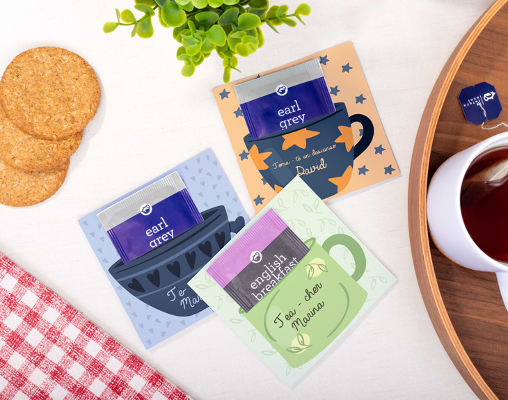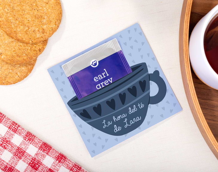 Seguro que tú también conoces a esa persona que adora el té, si es una de sus bebidas favoritas, tenemos algo que le va a encantar. Se trata de nuestra bolsa de té con tarjeta personalizada, está diseñado expresamente para él o ella. Hay dos tipos de tés disponibles para elegir: earl grey y english earl. Además, lo mejor de esta bolsita es que es personalizable, podrás escribir el nombre que tú junto con un mensaje divertido y original. Sin duda, se convertirá en un original regalo para cualquier ocasión especial, como un cumpleaños, un amigo invisible. Será el detalle perfecto para los amantes del té. Personalizar esta bolsita de té con tarjeta es súper sencillo. El primer paso a seguir consiste en añadir el producto al carrito y entrar al área de personalización. Una vez ahí, ya puedes escribir el mensaje que tú quieras junto con el nombre de esa persona tan especial. Pronto quedará perfecta y lista para regalar. ¡Será un original regalo par amantes del té! Medidas: 10,2 x 11 cm