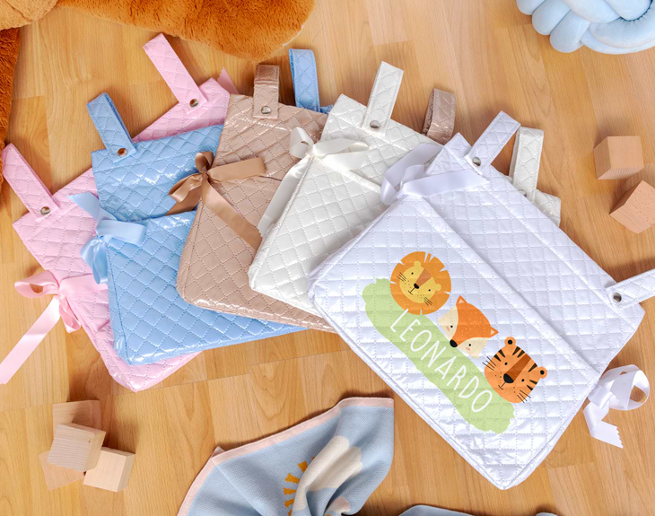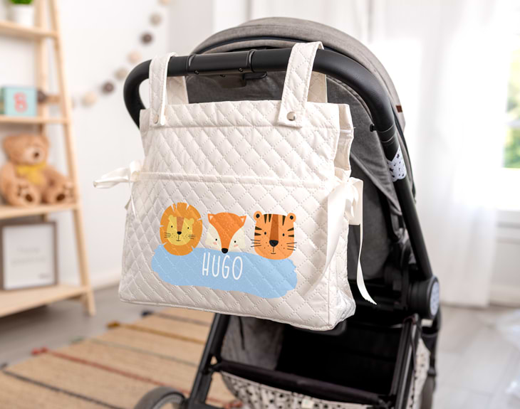 ¿Pronto llegará a tu hogar un bebé y estás buscando todo lo necesario para ese gran día? Entonces no puedes dejar pasar este bolso de paseo personalizado, perfecto para llevar todo lo que tu bebé necesita en sus salidas diarias. Está pensado para ofrecer comodidad y también porque desde que nacemos, tenemos que ir a la moda. Este bolso para el bebé está fabricado en polipiel acolchada, un material resistente al agua, fácil de limpiar y con un toque muy elegante. Su gran capacidad se debe a los múltiples compartimentos y bolsillos, tanto interiores como exteriores, perfectos para tener siempre a mano chupetes, toallitas húmedas o biberones. Además, cuenta con un asa larga para llevarlo cómodamente al hombro o colgarlo, y asas con broches de presión para sujetarlo fácilmente al manillar del carrito. Máxima funcionalidad en cada paseo. Es el regalo original para nacimientos, ideal para ese bebé que acaba de llegar a la familia o para regalar a esa pareja amiga. Lo van a adorar y, además, es de gran utilidad para los papás, especialmente para mamá. Y lo mejor de todo es que hay varios colores para elegir y personalizarlo con el nombre del pequeñín. Pero eso no es todo: también puedes escoger entre varios diseños de animalitos felices para darle vida a esta nueva etapa tan especial. Personalizarlo es muy fácil: solo tienes que añadir el bolso al carrito, elegir el color que más te guste, seleccionar el diseño del animalito preferido y escribir el nombre. Y listo a lucir el bolso talega para carro más chulo del barrio. Cuidados recomendados para que dure mucho más: Limpiar con un paño húmedo y un poco de jabón neutro si hace falta. No lo laves a máquina ni lo sumerjas en agua. Evita exponerlo al sol durante mucho tiempo para que no se desgaste el color. Medidas: 31,5 cm x 37 cm. Medida asas: 26 cm. Colores disponibles: rosa, azul, blanco, crema y marrón.