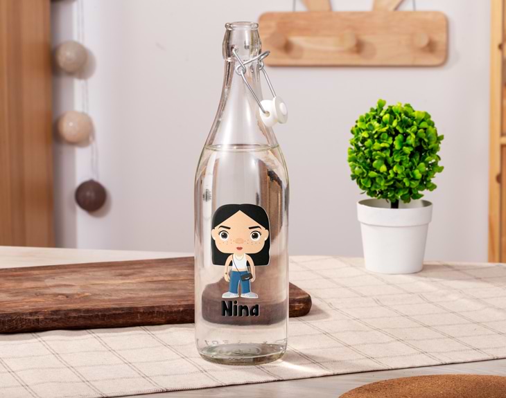 Si en casa sois de los que bebéis mucha agua, esta botella de agua personalizada se convertirá en vuestra mejor aliada. Además de fomentar una hidratación saludable, aporta un toque de estilo y frescura a cualquier espacio, desde la cocina hasta la oficina. Esta botella de cristal para agua es perfecta para quienes valoran la funcionalidad sin renunciar al diseño. Bonita, práctica y ecológica, está fabricada en cristal y cuenta con un tapón hermético que evita derrames, siendo ideal para uso diario tanto en casa, en el trabajo o en el escritorio del estudio. Además, es una opción sostenible y reutilizable que ayuda a reducir el uso de plástico, perfecta para mantener tu agua fresca y cuidando el planeta. ¿Y lo mejor de todo? Podrás lucir tu propio personaje Funko, diseñado solo por ti. Crea tu personaje Tinok a tu estilo, tenemos infinidad de rasgos y características para que lo personalices como más te guste. Diseña un personaje único que te represente o que saque una sonrisa a quien lo reciba como regalo. Personalizarla es muy sencillo: añade la botella al carrito, diseña tu personaje y escribe el nombre que quieras justo debajo. Así tendrás una botella exclusiva, con mucho estilo, perfecta para regalar o para darte un capricho. Una vez la recibas, solo queda llenarla y presumir de ella. Altura de la botella: 31 cm Capacidad: 1 litro