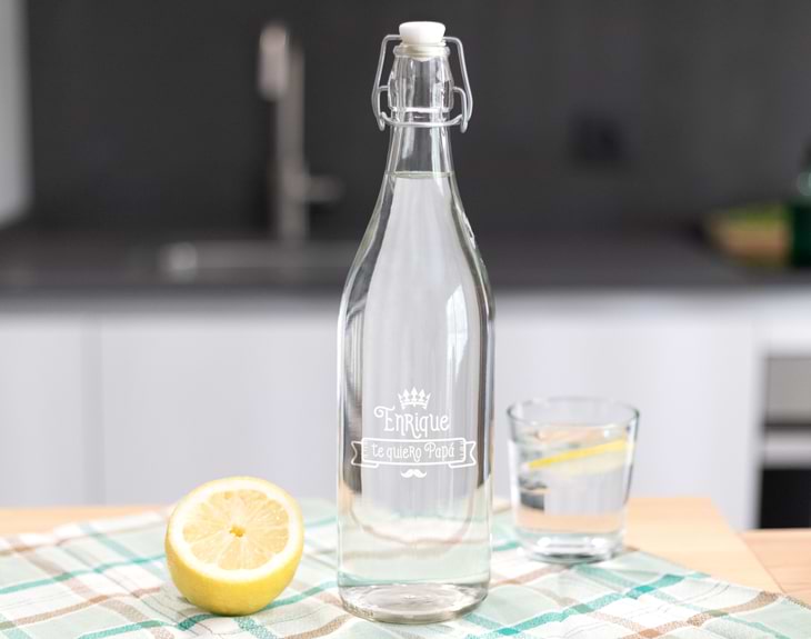 Sabemos que, a veces, cuesta beber la cantidad de agua recomendada al día, pero mantenerse hidratado es clave para sentirse bien. Por eso hemos creado esta botella de agua personalizada una forma divertida y bonita de animarte a beber más agua durante la jornada. Y créenos cuando la tengas en las manos, vas a querer llevarla contigo a todas partes. Esta botella de agua con nombre está fabricada en cristal resistente y cuenta con un tapón hermético que evita cualquier fuga. Su diseño sencillo pero elegante la convierte en la compañera perfecta para el día a día, ya sea en casa, la oficina o el gimnasio. Además, al ser personalizada, es un regalo original y práctico para quienes buscan una opción sostenible y reutilizable. ¿Lo mejor de todo? Puedes personalizarla con el nombre o un mensaje corto que te inspire. Solo tienes que añadirla al carrito, diseñarla a tu gusto y listo. Tendrás la botella de agua más guay de la casa. Es un regalo para el hogar y, además, serás la envidia cada vez que tomes agua bien fresquita. Altura de la botella: 31 cm. Capacidad: 1 litro.