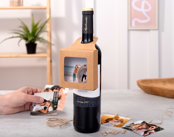 Imagina regalarle a esa persona especial, además de una buena botella de vino o cava, una recopilación de momentos inolvidables que podrá atesorar para siempre. Con esta guirnalda de fotos Polaroid, los mejores recuerdos cobrarán vida y se convertirán en un regalo original que no solo se brinda, también se siente y se revive. Es perfecto para un regalo de cumpleaños, aniversario o cualquier celebración en la que quieras emocionar, sorprender y, por qué no, sacar alguna lagrimita. Quien lo reciba quedará encantado y se enamorará de cada uno de los detalles. Este set incluye una botella de vino Azpilicueta o una burbujeante cava Jaume Serra o Brut Nature, y una cajita muy especial con una guirnalda de hilo yute que lleva 5 fotos Polaroid personalizadas, listas para decorar y recordar esos momentos únicos. Personalizarlo es muy fácil: elige el tipo de botella (vino o cava), añade el producto al carrito y, en el área de diseño, sube esas fotos tan especiales. En pocos pasos tendrás el mejor regalo de todos, donde cada copa y cada imagen contarán una historia inolvidable. Medidas de la cajita: 9 x 9 x 3 cm.