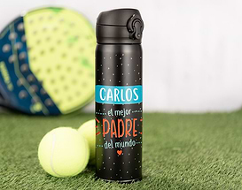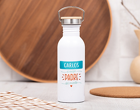 El mejor padre del mundo tiene que contar con ciertas cualidades que le conviertan en ese maravilloso padre que tanto te apoya en todo momento. Debe ser una persona de confianza, con la que se pueda hablar, y que siempre te ayude en los peores momentos. ¡Seguro que tu padre reúne todas esas características que le convierten en el padre perfecto! Por eso creemos que ese grandísimo papá se merece un detalle, algo que le hagan los días más llevaderos... ¡Sobre todo durante los meses de verano! El calor puede ser matador, y necesita hidratarse al máximo en todo momento. Para los mejores padres tenemos esta botella personalizada. ¡Será su mayor aliado durante los meses más calurosos del año! Esta botella blanca con diseño para papá está hecha de acero inoxidable, lo cual la hace perfecta para proteger la temperatura del interior de la misma. ¡Cuenta con una capacidad de 620 mililitros! ¿Qué tienes que hacer para sorprender a papá con un regalo original como este? Añade el producto al carrito y entra en el área de personalización. ¡Ahí podrás personalizar el diseño con el nombre de papá! Altura de la botella: 25,5 cm. Diámetro de la base de la botella: 6 cm. Capacidad: 500 ml. Material: Acero inoxidable.