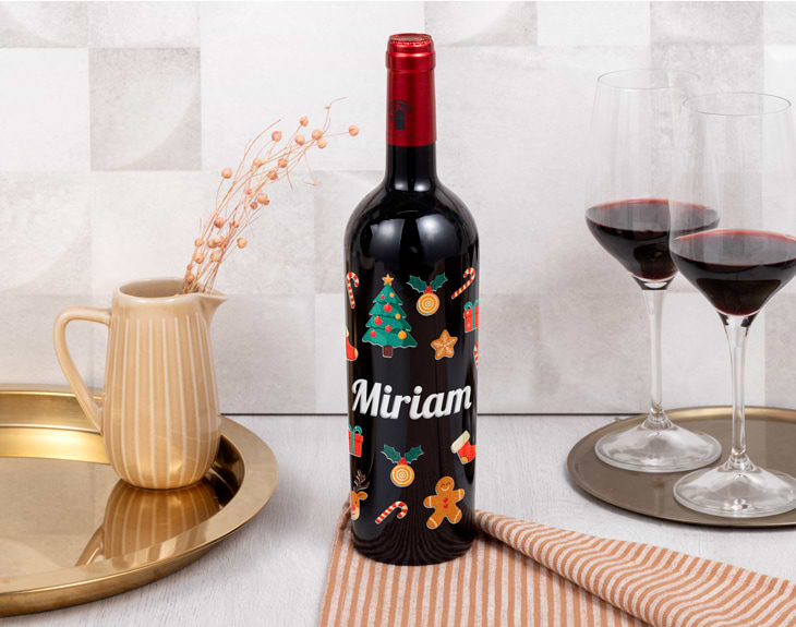 Se acercan las fiestas navideñas y quieres tener un detallazo con familiares o amigos, ¡y tenemos la opción perfecta! Porque no hay mejor forma de celebrar los grandes momentos que con una buena copa de vino y mucha tranquilidad. Te presentamos nuestra botella de vino personalizada, con un estampado navideño muy bonito, llamativo y especial. Les encantará desde el primer brindis. Sorprender con una botella de vino siempre es un acierto, y aún más en las fiestas navideñas. Porque, seamos sinceros, ¿hay mejor plan que compartir unas copitas en buena compañía? Ideal como regalo personalizado para Navidad, regalo para amantes del vino o detalle elegante para invitados especiales, y perfecto para disfrutar con las personas que más quieres. Personalizarla es muy fácil: añade el producto al carrito, escribe el nombre de quien quieras sorprender y listo, ya tienes un detalle para brindar, celebrar y compartir estas navidades con mucho estilo. Una botella de vino con pegatina personalizada que hará que cada brindis sea inolvidable. Utilizamos como base un exquisito vino de la Tierra de Castilla y León, cuya certificación de origen garantiza una calidad excepcional. Envejecido en barrica de roble, es un caldo sorprendente, lleno de matices. Su botella premium y su sabor cuidadosamente elaborado hacen de este vino el mejor regalo posible.