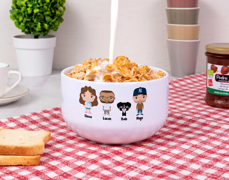 No hay nada como disfrutar cada mañana de tu desayuno favorito. Pero es mucho mejor si lo haces en este bol personalizado con tus propios muñecos Tinok. Ahora los desayunos será el momento más divertido del día con este cuenco tan guay y hecho especialmente para ti o para regalar a esa persona tan especial. Si eres de esas personas que no puede vivir sin su desayuno, este bol es perfecto para ti. A todos nos encanta poder disfrutar de un buen desayuno cada mañana con tiempo. Por eso, si te encantan los cereales con leche, te gustará un montón tomarlos en este original cuenco. De color blanco y hecho de cerámica, es el mejor utensilio para disfrutar de esa combinación de comida que más te guste y que además, no podrá falta en tu cocina ni en la de nadie. ¡Sorprende a esa persona tan especial con este tazón con su muñeco Tinok! Pero queda la mejor parte. No te olvides que podrás personalizar este bowl para que sea el más guay del mundo. Añade el producto al carrito y entra en el área de personalización. Ahí, podrás empezar a crear tus propios muñecos Tinok, desde cero y con todos los detalles que necesites. Podrás añadir hasta 6 Tinoks en este cuenco tan chulo. ¡Un regalo único para esa fecha tan especial! Medidas: 8 cm de alto x 13,5 cm de diámetro. Capacidad: 570 ml. Importante: Lavar a mano.