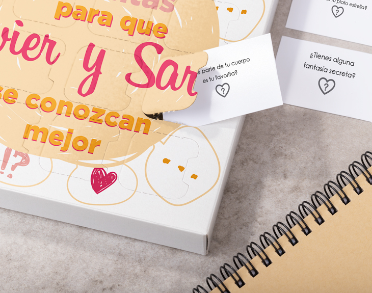 • Caja 25 preguntas para conocerse mejor. • Tarjeta recordatoria.