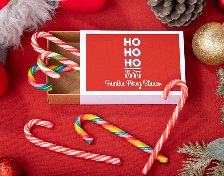 • Caja de bastones de caramelo para Navidad. • Tarjeta Recordatoria.