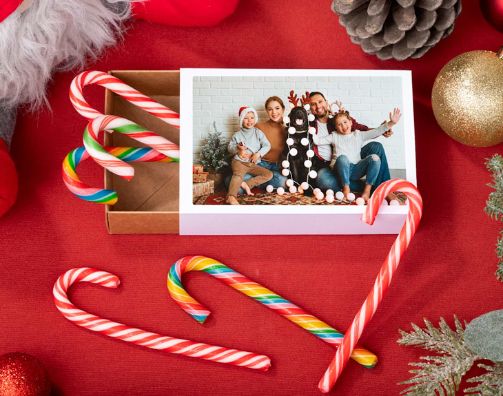 Nuestra caja de bastones de caramelo está diseñada para que puedas aportar tu granito de arena en el adorno navideño de tu casa. La caja incluye 5 bastones de caramelo, listos para colgarlos en el árbol y darle un toque de alegría, dulzura y amor. Además, la caja viene personalizada con la foto que tú elijas. Así, después de comeros todos los bastones, podéis utilizar la caja para otros usos. ¡Es fantástico! Si todavía no has terminado de decorar la casa de Navidad, este es el regalo que te falta. ¡Lleva la Navidad a tu familia! Medidas caja: 10 cm x 15,5 cm.