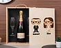 Las grandes ocasiones deben celebrarse con una copa de por medio. ¿Y qué mejor bebida que el champán para cualquier tipo de fiesta? Esta espumosa bebida está pensada para tomar cuando estás rodeado de tus seres queridos o en una ocasión muy especial. Por eso no se nos ocurre una mejor forma de sorprender a los afortunados que con esta caja con champagne y copas personalizada. ¡Será un detalle que nunca olvidarán! Estamos seguros de que tus amigos o familiares estarán contentísimos de recibir una caja con botella de champagne y dos copas con tapa con foto como esta. Y es que en el interior de esta caja de madera (de 37,5 x 10,5 centímetros) podrán encontrar dos copas de cava hechas de cristal de 19 centímetros de alto y una botella de Moët & Chandon de 750 mililitros. ¡El regalo perfecto para no olvidar nunca ese fantástico día! Este regalo original está pensado para hacer que disfruten de sus noches y quedadas como nunca lo habían hecho antes. ¡Y todo esto con los Tinoks como protagonistas! A la hora de personalizar este producto podrás hacerlo de dos maneras distintas: personalizando solo la tapa de la caja con el personaje Tinok que quieras (diseñándolo en el sistema y escogiendo uno de nuestra familia Tinok) o diseñando tanto la tapa como las copas, añadiendo el texto que quieres ver grabado en estas copas. ¡Un regalo de lo más completo! Además, también podrás elegir la opción con copas y botella personalizadas. Importante: la caja de madera trae de serie un pequeño círculo superior centrado para abrir cómodamente la caja donde recomendamos no diseñar cosas importantes de la personalización. Altura de las copas: 19 cm. Medidas de la caja: 37,5 x 29,5 cm x 10,5 cm. Material: madera. Capacidad de la botella: 750 ml.
