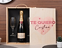 No hay nada mejor que disfrutar de una noche de amor inolvidable junto a la persona que quieres. Una cenita a la luz de las velas, vuestra película favorita, esos platos que siempre coméis en ocasiones especiales... ¿Qué es lo único que falta en esta acogedora imagen? ¡Un buen brindis será la guinda del pastel! Esta caja con champagne y copas personalizada será el detalle perfecto para un aniversario como este. Conocemos mil formas distintas de decir "te quiero", pero ninguna de ellas será tan especial como con esta caja con botella de champagne y dos copas con tapa con diseño romántico. Este pack lo tiene todo para esa noche tan especial: dos copas de cristal de 19 centímetros y una botella de Moët & Chandon de 750 mililitros. Todo esto en una caja de madera de 37,5 centímetros de altura por 10,5 de profundidad. ¡Seguro que no se lo esperará! Lo bueno que tiene este regalo original es que lo podrás personalizar de dos formas distintas. Podrás personalizar tu diseño para la tapa y/o escribir el texto que quieras para cada uno de las copas. Escoge la opción que más te guste y crea tu producto con el diseño y el texto que quieras. ¡Podrá ser el nombre de esa persona especial! Podrás hacerlo todo en el portal de personalización una vez añadas el producto al carrito. Además, también podrás elegir la opción con copas y botella personalizadas. Importante: la caja de madera trae de serie un pequeño círculo superior centrado para abrir cómodamente la caja donde recomendamos no diseñar cosas importantes de la personalización. Altura de las copas: 19 cm. Medidas de la caja: 37,5 x 29,5 cm x 10,5 cm. Material: madera. Capacidad de la botella: 750 ml.