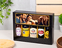 ¡Cuántos recuerdos especiales con gente tienes alrededor de unas buenas cervezas! ¿No te gustaría seguir creando momentos así? Nosotros te damos la excusa perfecta y ponemos el menú con este pack premium de las mejores cervezas. Lo único que tienes que hacer tú es buscar la mejor compañía y la imagen con la que quieres decorar esta preciosa caja negra con motivos amarillos. ¿No quieres hacer un regalo material? Regala el mejor sabor y tiempo para disfrutarlo juntos. Este set de las mejores cervezas del mundo puede ser un gran regalo original para las personas más cerveceras. Ya sea que prefieran una cerveza belga suave o una mexicana de arroz y lúpulo, en esta variedad de cervezas hay una para cada uno. Inmortaliza vuestros mejores momentos y el texto que quieras sobre esta caja de cartón para cervezas personalizada. Entra en nuestro diseñador una vez añadas el producto al carrito y podrás añadir todos los recursos que quieras para crear tu mejor diseño. El kit incluye cinco cervezas diferentes: - Pacífico: cerveza mexicana de agua, malta de cebada, arroz y lúpulo. 33cl. *Si Pacífico presenta problemas de suministro, este modelo de cerveza se sustituirá por otro similar e igual de delicioso. - Leffe Blonde: cerveza belga legendaria con una historia que se remonta al año 1240 en la ciudad de Dinant. 33cl. - Stella Artois: cerveza lager belga suave y con un frescor muy característico. 33cl. - Warsteiner: cerveza premium alemana que rinde homenaje a la cultura de su país. ¡Indispensable! 33cl. - Erdinger: cerveza de trigo de tradición bávara considerada la cerveza más grande del mundo. 50cl. Importante: Las cervezas que contiene el pack pueden variar según stock. El resto de cervezas disponibles son: - San Miguel 0,0% 25cl. - San Miguel Especial 25cl. - San Miguel sin glúten 33cl. - Cubanisto: cerveza cubana al estilo lager brillante con un toque de ron cubano y especias. 22cl. - Mica: cerveza artesana española elaborada en la Sierra de Fuentenebro al amparo de este mineral con una cebada excelente. 33cl.