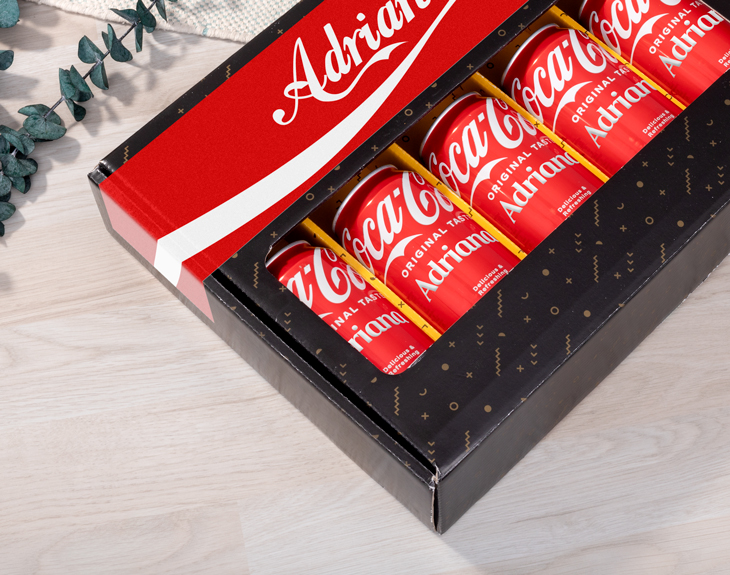 ¿Hay algo más inconfundible que el sabor burbujeante de una Coca-Cola bien fría? Ese primer sorbo que te hace sonreír y pensar: “esto sí que sabe a felicidad”. Ahora imagina poder compartir esa sensación con las personas que más quieres… ¡y con su nombre en cada lata! Esta caja premium de Coca-Cola personalizada es un regalo original y divertido, ideal para los auténticos fans de la marca más icónica del mundo. Perfecta para sorprender a tus amigos, familiares o incluso para triunfar en el amigo invisible. La caja incluye cinco latas de Coca-Cola clásica que podrás personalizar una a una con diferentes nombres o mensajes. ¡Un detalle único para regalar a toda la familia o a tu grupo de amigos! Además, también podrás diseñar la caja a tu gusto, añadiendo un toque personal que la hará aún más especial. Personalizarlo es muy fácil: añade el producto al carrito y entra en el área de diseño. Escribe lo que quieras en cada lata y el mensaje que prefieras en la caja. En pocos minutos tendrás un regalo personalizado que no dejará a nadie indiferente. Porque una Coca-Cola personalizada no es solo una bebida: es una forma original de decir “eres especial” con el sabor de siempre.