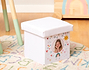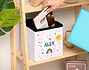 Si tu hijo/a se pasa el día revolviendo todos los juguetes y siempre termina dejándolos por el suelo de su cuarto. Esta caja taburete “Sol y nubes” es algo que no puede faltar en su habitación. Gracias a esta caja conseguirás que deje todos sus juguetes bien recogidos en su interior, es una buena manera de enseñarle la importancia de mantener el orden. ¡A partir de ahora recoger le resultará mucho más divertido! El diseño de este puf tiene un estampado precioso, con un decorado de arcoíris, nubecitas, un sol y muchos corazoncitos, sin duda, llenará de color y amor su habitación. Además, ¡este producto es personalizable! Tienes la posibilidad de elegir entre añadir su nombre o poner una fotografía del más peque de la casa, elige la personalización que más te guste y nosotros lo colocamos en el centro del diseño. Sus dimensiones son de 23 centímetros cuadrados, bastante espaciosa para guardar todos sus juguetes. Si no se te ocurre qué regalar, sin duda, esta cajita es perfecta. Además, cuando termine de ordenar se pondrá sentar a descansar porque… ¡También es taburete! Y te preguntarás… ¿Cómo se personaliza esta caja taburete? Lo primero es añadir el producto al carrito y entrar al área de personalización. Una vez ahí, podrás escribir el nombre de tu hija o hijo.