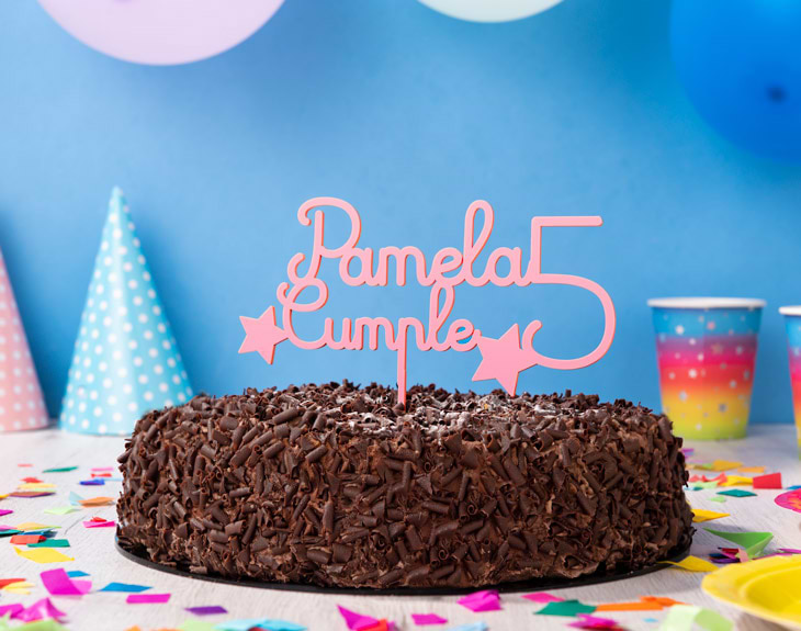 El día de nuestro cumpleaños es la fecha más importante porque celebrar un año más con nuestra familia y amigos, es todo un regalo. Si eres de esas personas a las que les encanta preparar su fiesta de cumpleaños y poner mucha decoración, en tu tarta de cumpleaños no puede faltar este cake topper personalizado. Es el toque más especial que le puedes dar a cualquier tarta para que todos los invitados sepan de quién es el cumpleaños. Quedará perfecto en cualquier tarta. ¡Será la protagonista de cualquier fiesta! Si hay algo que no puede faltar en ningún cumpleaños es la tarta. Es la estrella de toda celebración y existen de mil formas, colores y sabores. Pero para que la tarta de tu cumpleaños sea la más especial de todas, no le puede faltar en la parte de arriba este original cake topper. Hecho de metacrilato, es el accesorio perfecto. Podrás clavarlo sin problemas y quedará perfecto en lo alto de tu tarta para que todo el mundo lo vea. Y lo mejor de todo es que podrás personalizar tu cake topper. Añade el producto al carrito, después elige el color del metacrilato y para terminar escribe el nombre del cumpleañero o cumpleañera y los años que cumple y listo. Nosotros nos encargamos del resto. ¡Es perfecto para sorprender a alguien por su cumpleaños! Importante: La tarta no está incluida.