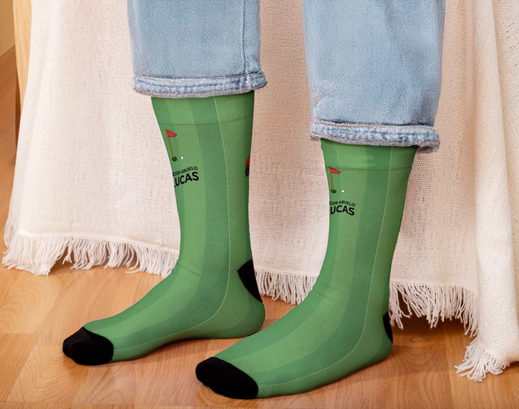 Si tu abuelo es un amante del golf, estos calcetines personalizados "Abuelo Golf" serán el regalo ideal. Con un diseño original que incluye un carrito de golf, un banderín y un hoyo, ¡será un detalle que no podrá dejar de usar! Además, lo mejor es que puedes personalizarlos. Añade el nombre o el mensaje que más te guste para hacer de estos calcetines un regalo aún más especial. ¡Seguro que tu abuelo se sentirá muy orgulloso de llevarlos en su próxima partida! Sin duda, un regalo original para los fanáticos del golf. Personalizarlos es muy sencillo: solo añade el producto al carrito, entra al área de personalización y escribe el texto que desees. En pocos pasos, tendrás un regalo original y lleno de cariño, perfecto para sorprender a tu abuelo en su cumpleaños, el Día del Padre o cualquier otra ocasión especial. Importante: en los calcetines bajos, la impresión se realiza en la planta del pie o el empeine. IMPORTANTE: Talla: única Medidas de cada calcetín: 41 x 9 cm. Medidas de la caja: 13,5 x 10,5 x 4 cm. Medidas de la lata: 11 x 8,5 cm. Material: poliéster.