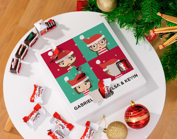 ¿Cuál es tu época favorita del año? Seguro que estamos todos de acuerdo en que la fecha más bonita y mágica del año es la Navidad. Si tienes un montón de ganas de que llegue, tenemos algo que no te puede faltar para amenizar la espera. Nuestro calendario de adviento personalizado con diseño "Tinok Pop" es ideal para esta ocasión. Es perfecto par que hagas una cuenta atrás contando los días que faltan para el 24 de diciembre. ¡Hay un dulce por cada día! Podrás elegir el tipo de relleno que quieras en cada cuadradito. Y lo mejor de todo es que es personalizable, podrás crear a estos avatares como tú quieras. ¡Será súper divertido! Por último, personalizar este calendario de adviento es muy sencillo. El primer paso a seguir consiste en añadir el producto al carrito y entrar al área de personalización. Una vez ahí, ya puedes crear a esta avatar Tinok desde cero. ¡Ya verás, qué divertido! Pronto estará perfecto y listo para regalar. ¡Será un original regalo para Navidad! Puedes llenar el calendario con las gominolas o chocolates que más os gusten. ¡Tenemos un montón de opciones! Tamaño aproximado: 22,50x22,50 cm