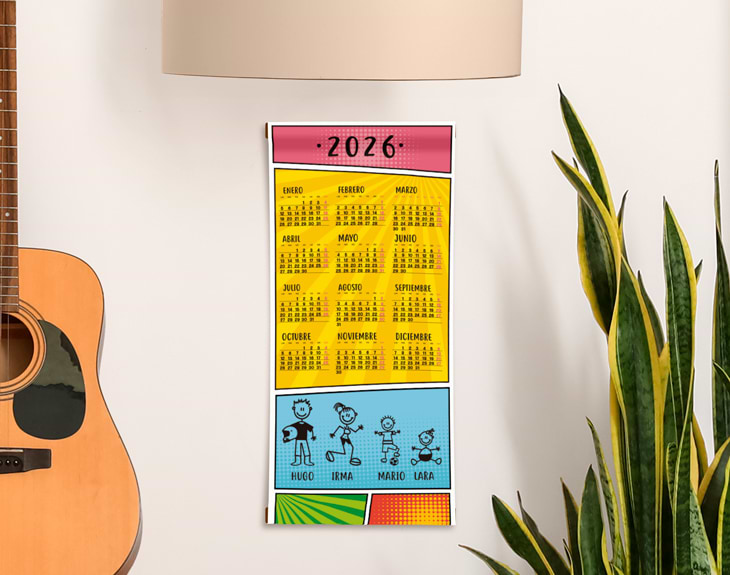 • Calendario personalizado con tus personajes • Tarjeta recordatoria.