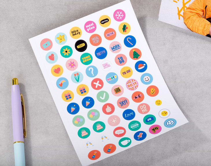 • Calendario de mesa personalizado. • Plancha de stickers (opcional). • Tarjeta recordatoria.
