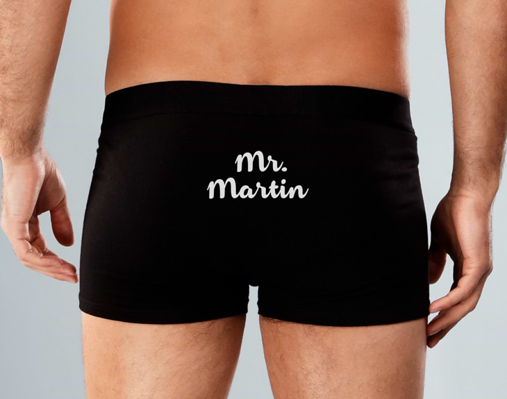 Se acerca el día más romántico del año. ¡El día de los enamorados ya está aquí! Si este año quieres sorprender a tu pareja por San Valentín con un regalo súper original, está claro que nuestro calzoncillo parte trasera personalizada con diseño "Mr." es ideal para esta ocasión. ¡Triunfarás seguro! Lo más especial que tiene es que es personalizable. ¡Podrás escribir lo que tú quieras! Además, no solo es único, ¡también es super cómodo! No hay duda, a partir de ahora se convertirá en su ropa interior favorita. Elige el color y la talla que quieras para asegurarte de que le queda como un guante. ¡Es lo más! Están fabricados con poliamida, un tejido elástico y transpirable, y cuentan con una cinta elástica para que se ajusten perfectamente a la cintura. Además, puedes escoger entre diferentes tallas (M, L y XL), así todo el mundo podrá disfrutar de estos increíbles calzoncillos personalizados con una frase divertida. Personalizar estos calzoncillos es súper sencillo. El primer paso a seguir consiste en añadir el producto al carrito y entrar al área de personalización. Una vez ahí, ya puedes escribir lo que tú quieras. Pronto estarán perfectos y listos para regalar. ¡Será un original regalo para enamorados! Talla: - Talla M: 33,5 x 25 centímetros. - Talla L: 36 x 26 centímetros. - Talla XL: 43 x 29 centímetros. Material: poliamida (90%) y elastano (10%). Color: negro o blanco. Importante: se puede lavar a una temperatura máxima de 30 grados. No es recomendado usar lejía ni secarlo en la secadora. No se debe planchar.