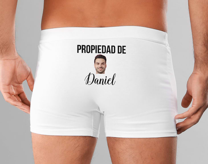 ¿Estás buscando el regalo más especial para sorprender a tu novio? ¡Te traemos la opción perfecta! Se trata de un divertido calzoncillo personalizado con la frase “propiedad de” y tu nombre y tu foto. Así no quedará ninguna duda, ¡tu novio es tuyo y solo tuyo! Seguro que es el detalle más sexy y diferente que ha recibido nunca. ¡Ideal para estrenar en una velada súper romántica! Triunfa el próximo 14 de febrero con este original regalo porque será todo un acierto. ¡El mejor detalle para parejas! Además, no solo es único, ¡también es super cómodo! No hay duda, a partir de ahora se convertirá en su ropa interior favorita. Elige el color y la talla que quieras para asegurarte de que le queda como un guante. ¡Es lo más! Están fabricados con poliamida, un tejido elástico y transpirable, y cuentan con una cinta elástica para que se ajusten perfectamente a la cintura. Además, puedes escoger entre diferentes tallas (M, L y XL), así todo el mundo podrá disfrutar de estos increíbles calzoncillos personalizados con una frase divertida. Personalizar este calzoncillo es súper fácil. Añade el producto al carrito y entra en el área de personalización. Una vez ahí, podrás comenzar a crear tu diseño de la parte trasera de este calzoncillo. Complétalo con el nombre y la foto que quieras y listo. Nosotros nos encargamos de que quede perfecto. ¡Dejarás a tu novio sin palabras! Talla: - Talla M: 33,5 x 25 centímetros. - Talla L: 36 x 26 centímetros. - Talla XL: 43 x 29 centímetros. Material: poliamida (90%) y elastano (10%). Color: negro o blanco. Importante: se puede lavar a una temperatura máxima de 30 grados. No es recomendado usar lejía ni secarlo en la secadora. No se debe planchar.