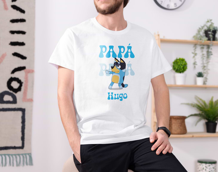 Bandit, Chilli, Bingo y Bluey son los perretes más famosos de la tele y los cuales los peques de la casa adoran. Esta serie tan divertida se ha hecho un huequito en todas las casas y ahora papás e hijos disfrutan de ella juntos. Por eso, si quieres sorprender a papá con un regalo diferente, hazlo con esta camiseta personalizada con diseño de los Bluey. Podrá llevarlos siempre encima vaya donde vaya y por supuesto tendrá la prenda más guay del mundo. Si quieres dejar a papá sin palabras, hazlo con este original regalo en esas fechas tan especiales como el Día del Padre o su cumpleaños. Seguro que le encanta tener una prenda con los dibujos de esa serie tan chula. Y lo mejor es que podrás elegir el tipo de camiseta o sudadera que más te guste para triunfar con tu padre, porque tenemos para todos los gustos. Personalizar esta camiseta es súper fácil. Añade el producto al carrito y entra en el área de personalización. Completa este divertido diseño con el texto que quieras y tendrás tu regalo listo para entregar. ¡A papá le encantará! Material: - Algodón: 100% algodón. - Tacto algodón: 100% poliéster cotton touch. - Técnicas: 100% poliéster. Importante: Las medidas son aproximadas, pueden variar 5cm por encima o por debajo.