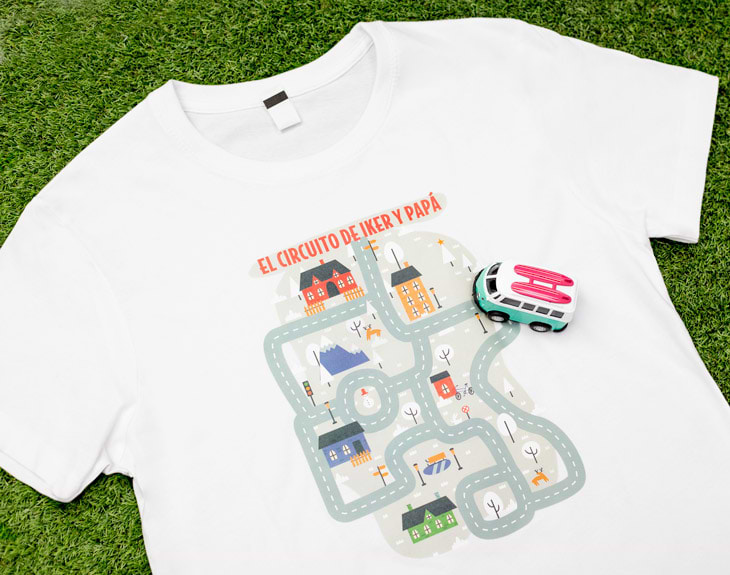 ¿Te acuerdas de cuando tu padre y tú ibais a algún sitio guay los fines de semana? Seguro que tienes muchos recuerdos como ese en tu memoria. Cuando te llevaba en coche al parque, tal vez cuando te recogía del colegio, o puede que cuando ibais al cine a ver esa película que tantas ganas tenías de ver. ¿Quieres hacerle un regalo que le recuerde esos momentos? Entonces esta camiseta personalizada es ideal. Y es que el diseño de esta camiseta es tan chulo que es imposible que no le guste. En él se puede ver un circuito, una carretera que recorre un pequeño pueblo nevado. Hay casas, semáforos, muñecos de nieve... ¡e incluso unos simpáticos renos! Una estampa preciosa para recordarle a tu padre esos días invernales en los que os lo pasábais tan bien. Además... ¡podréis llevar la misma camiseta e ir a juego! Podrás personalizarlas, añadiendo la frase que quieras y vuestros nombres. ¿Acaso hay un regalo original más perfecto para este Día del padre? Nosotros creemos que no. Material: - Algodón: 100% algodón. - Tacto algodón: 100% poliéster cotton touch. - Técnicas: 100% poliéster. Importante: Las medidas son aproximadas, pueden variar 5cm por encima o por debajo.