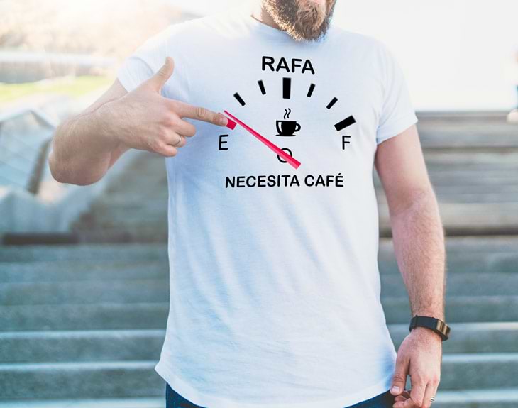 La paciencia y fuerza que tienen los padres es admirable. Después de pasarse horas y horas trabajando para darle un futuro a sus hijos, llegan a casa y todavía tienen un poco de energía para pasar tiempo con sus hijos y cuidar a su familia. Para poder aguantar durante todo un día con ánimo y fortaleza, los papás necesitan una buena dosis de cafeína que le despierte lo suficiente. Sabemos que no hay nada como una buena taza de café caliente, pero tenemos esta camiseta personalizada ideal para todos esos padres que no pueden vivir sin su buena ración de café por las mañanas. ¿Imaginas cómo sería si no tuviese ese líquido que consigue despertarle en cualquier momento? Regálale una camiseta como esta, y dale toda una sorpresa. Seguro que, al llegar a casa, su depósito de gasolina está bajo mínimos, y necesita todo el apoyo que pueda animarle. Esta camiseta es el regalo original ideal para todos esos hombres que necesitan tanto café como respirar. Añade su nombre a este diseño... ¡le sorprenderás tanto que no necesitará café nunca más! Material: - Algodón: 100% algodón. - Tacto algodón: 100% poliéster cotton touch. - Técnicas: 100% poliéster. Importante: Las medidas son aproximadas, pueden variar 5cm por encima o por debajo.