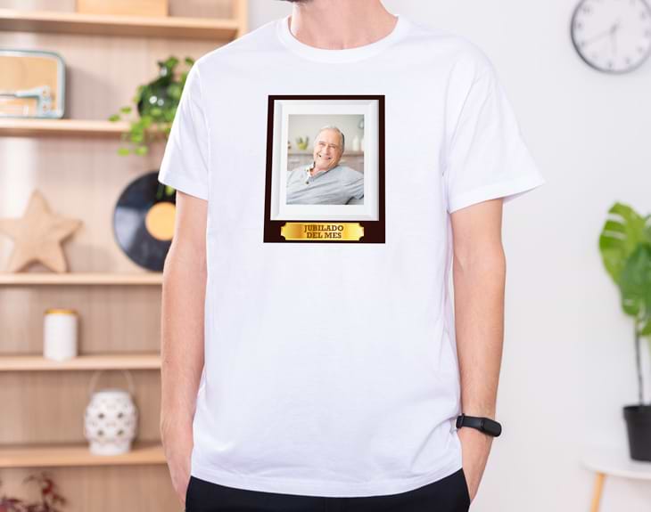 ¿Después de mucho trabajo por fin ha llegado el mes en el que se va a jubilar? Si quieres hacer una gran sorpresa a esa persona tan especial, esta camiseta personalizada es la opción perfecta. Y es que, ahora va a poder comenzar su vida como jubilado/a y disfrutar realmente de sus aficiones y de su tiempo libre. Solamente tienes que escoger una foto suya muy divertida o emotiva y será el mejor regalo del mundo. ¡Seguro que la guarda para siempre! Si quieres que se lleve un precioso recuerdo de la empresa podéis seleccionar esa fotografía que os hicisteis todo el equipo junto, así siempre podrá rememorar esos momentos tan guays. Material: - Algodón: 100% algodón. - Tacto algodón: 100% poliéster cotton touch. - Técnicas: 100% poliéster. Importante: Las medidas son aproximadas, pueden variar 5cm por encima o por debajo.