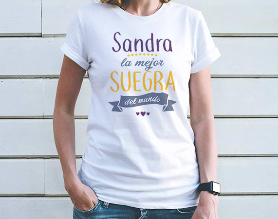 ¿Crees que eso de que las suegras y nueras se llevan mal es una teoría falsa? ¿Sales de paseo con la tuya y os echáis unas risas? Esta camiseta personalizada es perfecta para decirle le mucho que le quieres. Si para ti es la mejor suegra del mundo, regálale este detallazo personalizado con su nombre. Material: - Algodón: 100% algodón. - Tacto algodón: 100% poliéster cotton touch. - Técnicas: 100% poliéster. Importante: Las medidas son aproximadas, pueden variar 5cm por encima o por debajo.