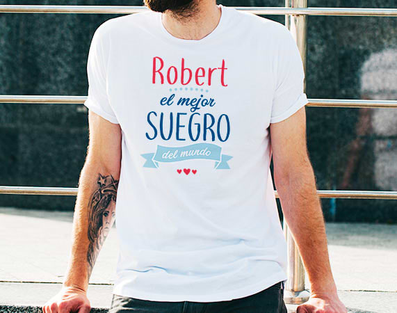 Una camiseta personalizada para el mejor suegro del mundo. Si estás buscando un detalle para demostrarle que le quieres mucho, este regalo original puede ser increíble. Personaliza la camiseta con el nombre de tu suegro, y haz que la lleve puesta orgulloso. Seguro que le sacas una sonrisa preciosa y rompes con la teoría de que un suegro y un yerno no se llevan bien. Material: - Algodón: 100% algodón. - Tacto algodón: 100% poliéster cotton touch. - Técnicas: 100% poliéster. Importante: Las medidas son aproximadas, pueden variar 5cm por encima o por debajo.