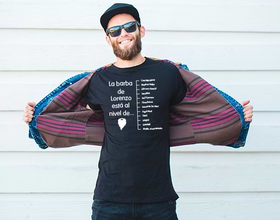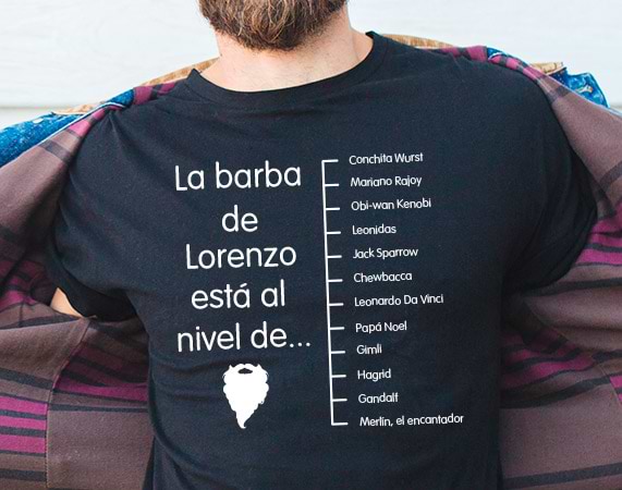 ¿Conoces a alguien que tenga la barba más larga que Merlín, el encantador? Este regalo original es perfecto para él. Las barbas están de moda, y cada uno elige su largura. ¿Cuál es la de tu amigo, tu novio, tu hermano o, incluso, la de tu padre? En cuanto se ponga esta camiseta, podrá medirse la barba con los personajes más célebres de la historia y sus respectivas barbas. Un auténtico juego de barbas muy original. Dinos su nombre y personaliza la camiseta para el más barbudo de tu entorno. Material: - Algodón: 100% algodón. Importante: Las medidas son aproximadas, pueden variar 5cm por encima o por debajo.