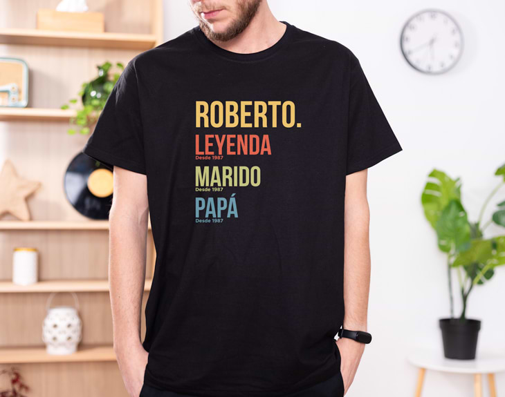 Seguro que si piensas en cómo describir a tu padre, seguro que se ocurren un montón de cosas. Y es que si para ti, tu papá es el mejor del mundo, está claro que tienes que demostrárselo de alguna forma. Por eso, nuestra camiseta personalizada con diseño "Padre leyenda" es el regalo ideal para que sepa lo mucho que lo queréis en casa. Seguro que le hará muchísima ilusión, ¡se quedará sin palabras! Así que si pronto se acerca el Día del Padre o alguna fecha especial, no esperes más y sorpréndele con el regalo perfecto, ¡Nuestra camiseta "Padre Leyenda"! Lo mejor que tiene esta camiseta es que es personalizable, podrás escribir todas esas palabras bonitas que te recuerdan a tu papá. Personalizar esta camiseta es súper sencillo. El primer paso a seguir consiste en añadir el producto al carrito y entrar al área de personalización. Una vez ahí, ya puedes escribir lo que tú quieras. Pronto estará perfecto y listo para regalar. ¡Será el regalo perfecto para el papá de la casa! Material: - Algodón: 100% algodón. - Tacto algodón: 100% poliéster cotton touch. - Técnicas: 100% poliéster. Importante: Las medidas son aproximadas, pueden variar 5cm por encima o por debajo.