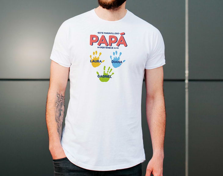¿Quién es el mejor papá del mundo? Seguro que para cada persona es el suyo y es que siempre están ahí para cuidarnos y protegernos. Por eso, tenemos quererles un montón, así que si quieres tener un detalle con él... ¡Tenemos el regalo perfecto! Se trata de nuestra camiseta personalizada con diseño "Este papá pertenece a...", es ideal. ¡Así todos sabrán quien es tu papá! Por otro lado, si se acerca alguna fecha especial como el Día del Padre, su cumpleaños o, simplemente, para demostrarle que es el mejor papá del mundo esta es la mejor opción. ¡Se convertirá en su camiseta favorita! Lo mejor es que estampado tan chulo que tiene que, además, es personalizable. ¡Podrás escribir los nombres de toda la familia! Personalizar esta camiseta es súper sencillo. El primer paso a seguir consiste en añadir el producto al carrito y entrar al área de personalización. Una vez ahí, ya puedes escribir los nombres del papá y del bebé. Pronto estará perfecto y listo para regalar. ¡Será un original regalo para padres! Material: - Algodón: 100% algodón. - Tacto algodón: 100% poliéster cotton touch. - Técnicas: 100% poliéster. Importante: Las medidas son aproximadas, pueden variar 5cm por encima o por debajo.