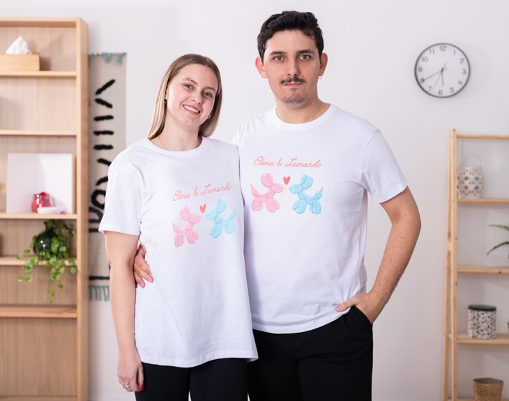 ¿Estáis tan enamorados que sentís que flotáis juntos en una nube? Entonces este diseño de Amor perruno os va a enamorar. Dos perritos adorables hechos con globos que ahora pueden representaros como pareja. ¿Puede haber algo más tierno? Sin duda, este regalo original para parejas es perfecto para triunfar, ya sea San Valentín o vuestro aniversario. Estas camisetas para parejas personalizadas son el detalle perfecto para demostrar cuánto os queréis. Cada camiseta puede llevar vuestros nombres, convirtiéndolas en un regalo único, especial... ¡y original! A tu pareja le encantará recibir un detalle así, pensado solo para vosotros. Además, podéis elegir entre varios colores de perritos, para que el diseño encaje con vuestro estilo. ¡Seguro que encontráis la combinación ideal! Sentirse conectados y, por qué no, ¡a juego! Estas camisetas no solo son románticas, también son súper cómodas. Puedes escoger entre distintas tallas. Diseñarlas juntos será parte de la diversión... y no te querrás perder la cara de tu pareja cuando vea esta sorpresa tan especial. Personalizar tus camisetas es muy fácil: añade el producto al carrito y accede al área de personalización. Allí podrás elegir las tallas de las camisetas y, por supuesto, el diseño de vuestros perritos. Solo te quedará añadir vuestros nombres o una frase especial… ¡y listo! Prepárate para regalar (o compartir) uno de los detalles más originales y amorosos del mundo. Material: - Algodón: 100% algodón. - Tacto algodón: 100% poliéster cotton touch (140 g/m²). Importante: las camisetas tacto algodón tienen un ligero efecto traslúcido. Si quieres 100% opacidad, elige algodón. - Técnicas: 100% poliéster. Importante: Las medidas son aproximadas, pueden variar 5cm por encima o por debajo.